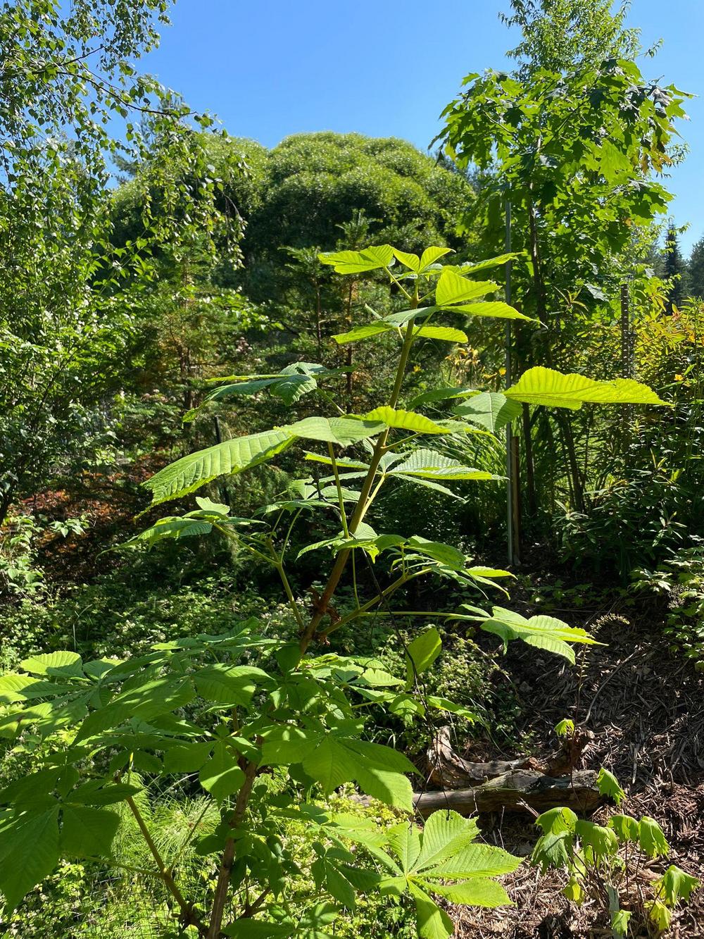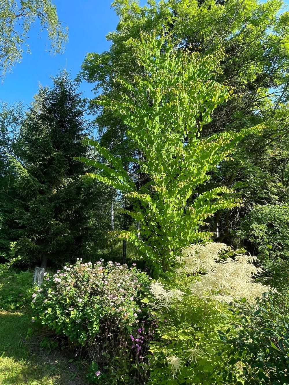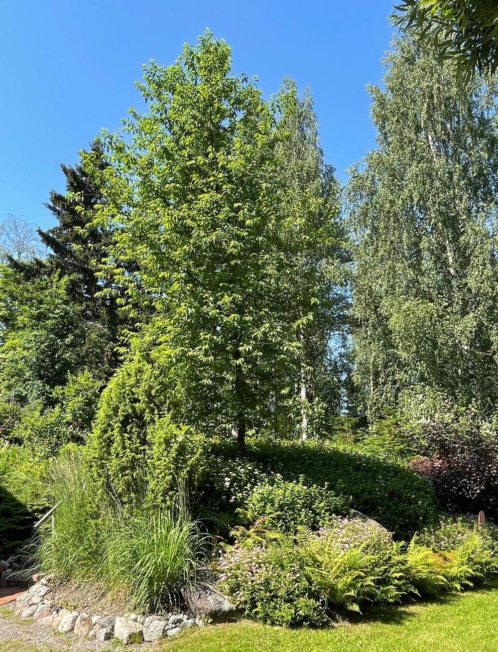 Kuvaus puutarhasta: | Jokiniemen uimarannan puiston alkuperää oli Närhin marjatila joka Laukaan kunta sai haltuun vuonna 1980 Tila metsistyi ja kunta kaatoi vuonna 2014 alueen kuuset, männyt ja koivut. Tilalle olen heittänyt tammenterhoja istuttanut katsura, kanadan tammi, hevoskastanja, saarni omenapuut, kirsikkapuut, kääpiömänty, ym. Linnut ovat kakkaneet siemiä siellä täällä pensaita: koiranheisi, kuusamat, angervot, ym Polkuja ovat kunossa (Kietrotie, Oikopolkku, Toinen linja, Huoltotie) |