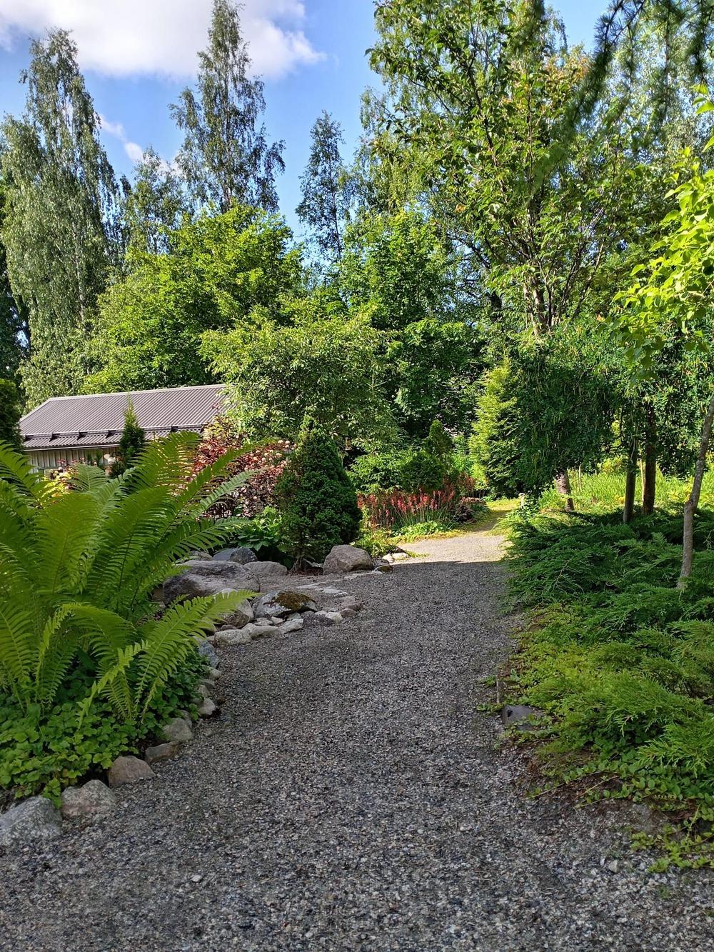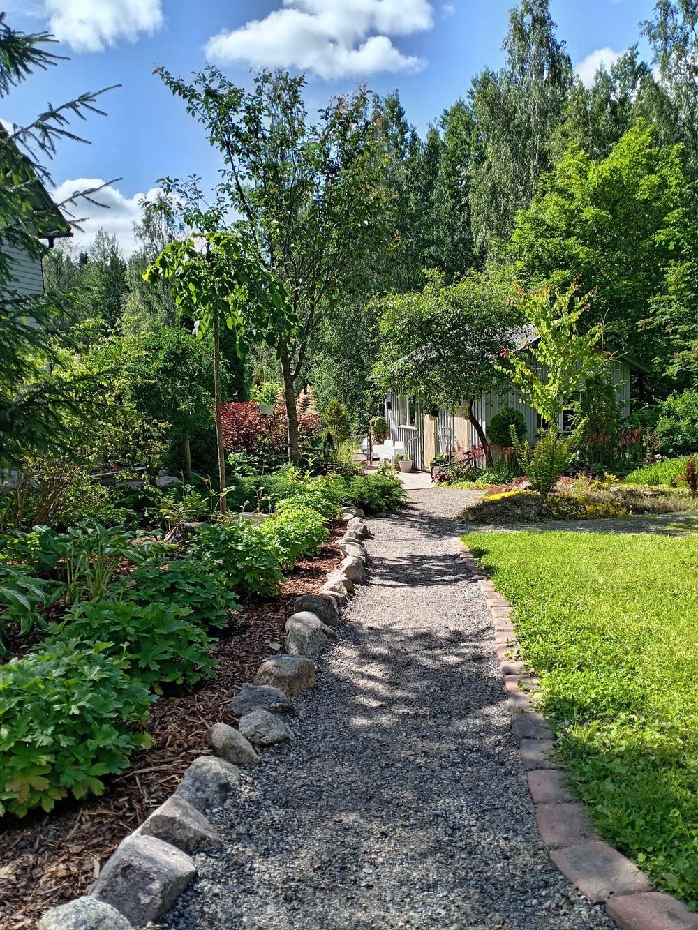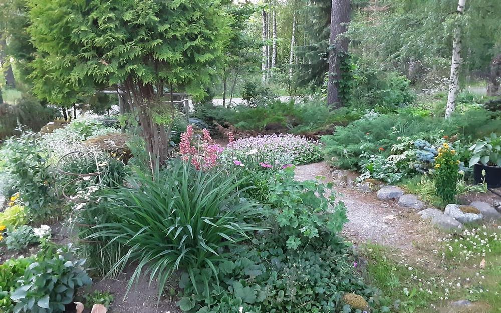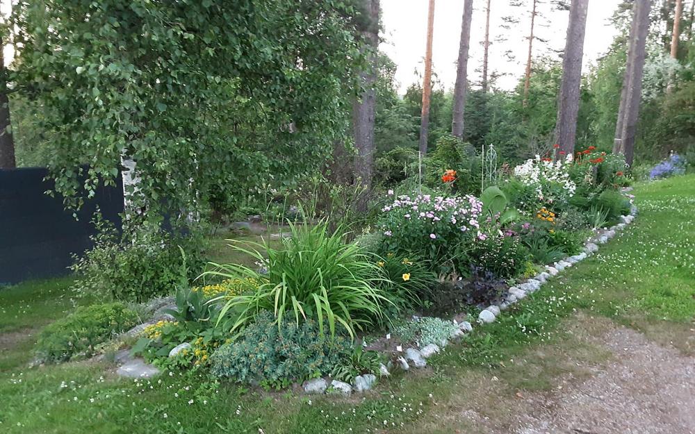 Kuvaus puutarhasta: | Palvajärven 1.6 hehtaarin tontillani kahdeksan vuoden aikana vanhasta metsäryteiköstä yhden naisen voimilla noussut puutarhapiha. On hyötykasvit, pensaat , puut ja kukat sulassa sovussa. Tervetuloa tutustumaan myös kaikkiin piha rakennuksiin, uusimpana laavu rannalla. |