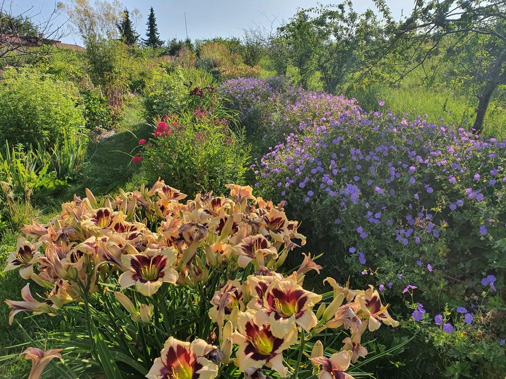Kuvaus puutarhasta: | Kukkahullu puutarhuri, joka täytti ensin vanhan puutarhansa ja muutama vuosi sitten onnistui ostamaan naapuritontin ja sujuvasti alkoi levittäytymään myös sinne. Uusi puoli alkoi tyhjästä, silloinen kesä oli hurjan kuiva ja puutarhan alku saikin nimityksen "Sahara". Sahara kasvaa ja rehevöityy vanhan puolen ahtauden helpottuessa kasveja siirrellen sieltä paremmille paikoille. Puutarhaa hoidetaan rennolle otteella, joten projekteja löytyy ja ehkä joku jää keskenkin kun uusi jo alkaa. Pasi keskittyy rakentamaan mitä pyydetään ja hoitamalla vesialtaan ja pensasaidat. Tervetuloa katsomaan, miltä tänä kesänä näyttää. |